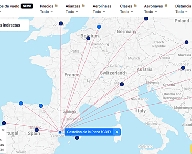 Pantallas ilustrativas de vuelos y su duración a Castellón. Fuente: Site flightconnections.