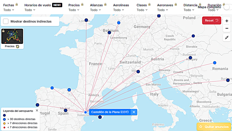 Vuelos internacionales al Aeropuerto de Castellón (CDT):