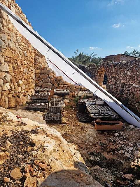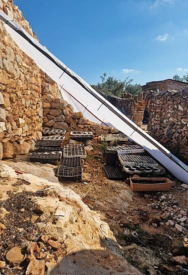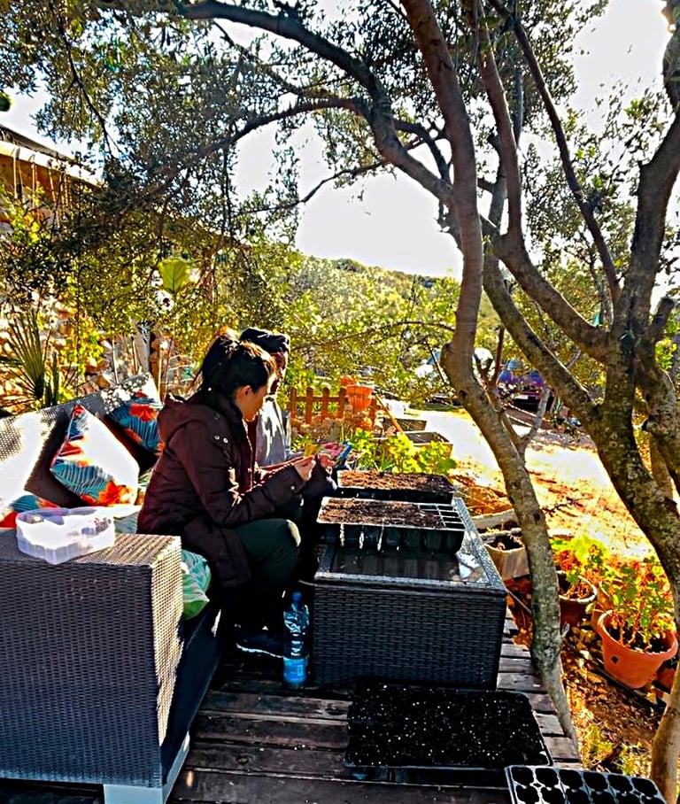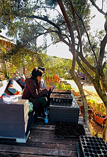 Plantando las semillas y El invernadero para las semillas. Fuente: Personal.