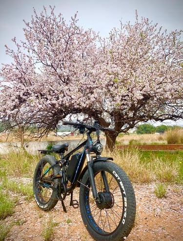 La bicicleta eléctrica y el modelo de coche Ionic 5 Hyundai de la Finca Eden. Fuente: personal.